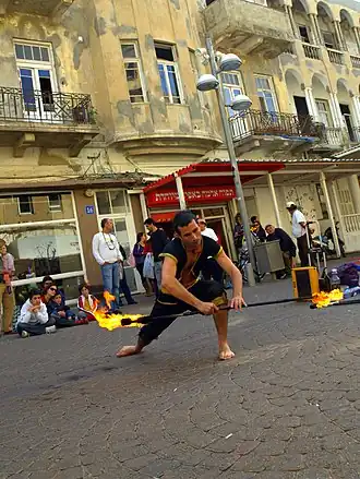 There are two predominant styles for manipulating a fire staff: rotational and contact. In rotational fire staff manipulation, the performer's hands are used to manipulate the motion and rotation of the staff. Contact fire staff is a technique whereby the performer rolls the staff over parts of the arms, legs and body. Both techniques can be used in a performance. Another technique is staff juggling, in which three staffs are thrown and caught.