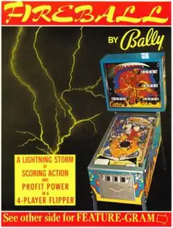Fireball is a historically notable pinball machine designed by Ted Zale and released by Bally in 1972. The table was one of the first to have a modern sci-fi/fantasy type of outer space theme and featured elaborate, artwork on the sides of the table, painted by Dave Christensen.