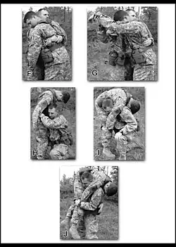 A fireman's carry or fireman's lift (also firefighter's-) is a technique allowing one person to carry another person without assistance, by placing the carried person across the shoulders of the carrier.[1]