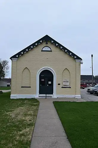 It is a small, one-story brick church, was built between 1858 and 1862. As of 1869, it was named the Soul Sleepers Church. During the 1880s it held the Pella Y.M.C.A. As of 2022 it is the site of an independent bookstore, Pella Books.