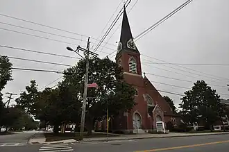 The First Congregational Church is a historic church at 400 Main Street in Farmington, New Hampshire. Built in 1875 for a congregation founded in 1819, it is the oldest church building in the town, and a distinctive example of Gothic Revival architecture designed by New Hampshire native Frederick N. Footman. The church was added to the National Register of Historic Places in 2018,[1] and the New Hampshire State Register of Historic Places in 2017.[2] The congregation is affiliated with the United Church of Christ.