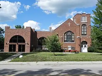 The congregation was founded by 1842, meeting in Henry Cheney's barn. It built a church in 1847. The present church was built in 1923.[3]