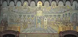 ![]() Image in the church Notre-Dame de Fourvières, France. The priest standing right in the middle is Cyril of Alexandria. On the throne is the Virgin Mary and child Jesus. | |