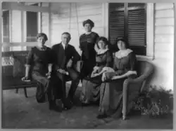 In 1937, the President's oldest son James moved into the Executive Residence and served as an advisor and private secretary in the West Wing. At the President's request, his daughter Anna moved into the Executive Residence in 1944 to serve as an assistant to the President and as White House hostess during the First Lady's frequent absences. A fifth son, Franklin Delano Roosevelt, Jr. (III), was born on March 18, 1909, and died approximately eight months later on November 7, 1909.[2] |