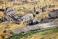 The plant was constructed between 1926 and 1933. About 3000 workers were employed during the construction.[7] Rutenberg's original proposal explained that the location near Jisr el-Majami was the only site on which it was "possible to begin construction of a powerhouse immediately", due to the required proximity to the Sea of Galilee (which would act as a natural reservoir) and because it represented the location which had been most densely settled by Jews.[8] The choice of the location influenced the ongoing Anglo-French discussions over the location of the mandatory borders, which became the Paulet–Newcombe Agreement.[9] A similar dynamic appeared in the finalization of the eastern border with respect to what became known as the "Semakh triangle".[10]