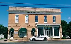 First National Bank Building is a historic bank building located at Creedmoor, Granville County, North Carolina. It was built in 1912, and is a two-story, Beaux Arts-style brick building. It features raised bands of brick cross the entire first floor front elevation, exploded in sunbursts over the three round-arched openings, and an ornate metal cornice. It housed a bank until 1977.[2]