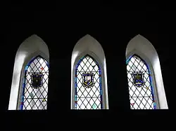 The sixth, and present, building was built in 1950. It was built on the foundation of the fifth building. The three stone walls left standing after the fire were reinforced. The north wall was torn down and the sanctuary was extended twenty feet. To complete the church, an 82 foot spire was hoisted into place on November 20, 1969. Placed atop the spire are a weathervane and chanticleer. Funds for the steeple came from personal contributions and memorial bequests.[6][7]