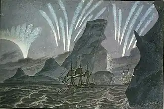 In 1818, there were rumors that Barrow planned a double expedition with four ships to reach the pole from both the Bering and the Davis Strait. When Alexander I heard about Barrow's plans, he ordered the sloops urgently outfitted and sent.[18] However, counter admiral Lev Mitin noted that Bellingshausen's expedition was explicitly scientific and did not imply the goals of territorial expansion.[19] According to Bulkeley, the lack of political aims in the expedition program does not signify anything since neither the Admiralty instructions for the 1818–1819 British Arctic expedition of Frederick William Beechey, William Parry, and John Ross, nor Franklin's lost expedition of 1845–1848, had any written political aims.[20] Thus, Bulkeley claimed that without any political aims, the expedition would be much less effective.[21]