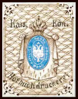 A new design of the first Russian postage stamp, of rectangular shape, was created by an ESSP's senior engraver Franz (Feodor) Kepler, who submitted it for consideration on 21 October 1856.[5] Preparing his stamp sketch, Kepler carefully examined all materials brought by Charukovsky from abroad, including the original designs and samples of stamps of different countries. As a prototype for creating the Russian postage stamp, Kepler took a printer's sample stamp made by the Prague firm Gottlieb Haase & Sons[b] that was proposed for the Austrian stamps of rectangular shape.[3][6]