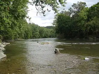 Areas along Fishing Creek contain pools followed by riffles, which are further followed by more pools. This configuration of pools and riffles creates an ideal situation for fly-fishing.[46] The lower part of the creek forms one side of a triangle of low-lying land in western Bloomsburg, which floods severely during heavy rains.[27]