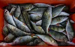 [Roach gravlax, tench terrine with peas, crayfish-lemon risotto... Three little-known fish from Lake Geneva want to make their way onto our plate.] - ^ a b "Statistique du pêche" [Fishing statistics] (in French). Federal Office for the Environment. Retrieved June 1, 2021.