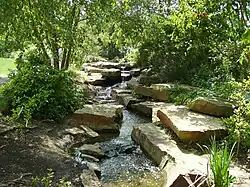 Five Rivers MetroParks is a regional public park system consisting of conservatories and outdoor recreation and education facilities that serve the Dayton metropolitan area. The name Five Rivers MetroParks comes from five major waterways that converge in Dayton. These waterways are the Great Miami River, Mad River, Stillwater River, Wolf Creek, and Twin Creek. Five Rivers MetroParks comprises more than 15,400 acres (62 km2) and 25 facilities with a number of amenities and features. These include hiking trails, a mountain bike area (MoMBA) at Huffman MetroPark, horse bridle trails, a disc golf course, a whitewater feature at Eastwood MetroPark, and a large butterfly house at Cox Arboretum MetroPark. Five Rivers MetroParks provides year-round recreation, education and conservation opportunities to the Greater Dayton community.[1]