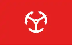 The three-anchor symbol in the centre of the flag is identical to the coat of arms of Brzeg.[2] The symbol in the centre of the flag has its origins tracing back from the foundation of Brzeg in 1248, when it was imprinted on the town seal and coins. The symbol is also found in the location prerogatives of the Silesian dukes, such as that of Henry III the White in 1250, and it has remained ever since. The symbol underlines the town's history, which is based around its harbour on the River Odra; the Latin name for the town, Alta Ripa, means "High Bank" in Latin.[3] In 2015, Śląsk Wrocław was fined by UEFA because fans displayed a flag with a neo-Nazi symbol which turned out to be the flag of Brzeg.[4]