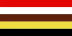 "The Brotherhood Flag consists of five equal stripes of equal width. The length of the flag is twice the width of the five stripes combined. Each stripe represents one of the five groups of the human race, namely: red, white, brown, yellow, and black. Respectful display of this flag will help promote unity, equality, freedom, peace, brotherhood and a genuine respect for international law, among all peoples of the earth."