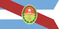 The current flag was declared the official symbol of the province by Decree No. 879/1987 MGJE of 5 March 1987, issued by Governor Sergio Montiel.[7]