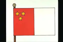 The flag consists of Two equally long stripes of red and white, with three yellow five-pointed stars in the top of the trousers, placed 2 and 1, the colors refer to the historic arms of the city, during the Middle Ages. And the 3 yellow stars refer to the 3 sub-municipalities of Menen (Menen, Lauwe, and Rekkem)[1]