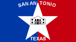 | Design | A vertical bi-color of blue on the left and red on the right, with a large white star in the center, containing a black-outlined Alamo in the middle |