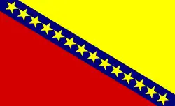 1941–1945 | Flag of Yugoslav partisan movement | Three equal horizontal fields, blue on the top, white in the middle and red on the bottom, red star in the white field. |
