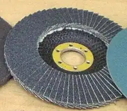 The first flapwheels were made from cut sheets of abrasive, stacked into a multi-layered flat disk.[1] These gained the advantage of long life from their materials, but their geometry was still flat and so they tended to produce surface flats if not carefully handled.
