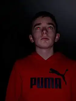 The "red-eye effect" is another problem with on camera and ring flash units. Since the retina of the human eye reflects red light straight back in the direction it came from, pictures taken from straight in front of a face often exhibit this effect. It can be somewhat reduced by using the "red eye reduction" found on many cameras (a pre-flash that makes the subject's irises contract). However, very good results can be obtained only with a flash unit that is separated from the camera, sufficiently far from the optical axis, or by using bounce flash, where the flash head is angled to bounce light off a wall, ceiling or reflector.