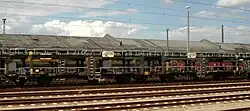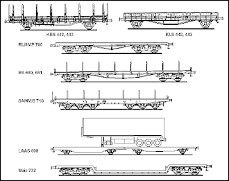These wagons for the ACTS roller container transport system with horizontal crossloading are common especially in Switzerland and the Netherlands. The Swiss wagons bear the national index letter x.