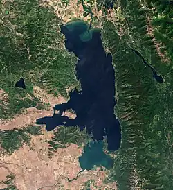 Flathead Lake (Salish: člq̓etkʷ, Kutenai: yawuʔnik̓ ʔa·kuq̓nuk)[3] is a large natural lake in northwest Montana, United States.
