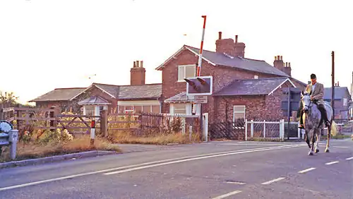 The station's level crossing is still extant. A risk assessment carried out in 2012 stated that it carried 34 trains per day with 1,485 vehicles and 297 pedestrians/cyclists using the crossing per day.[4]