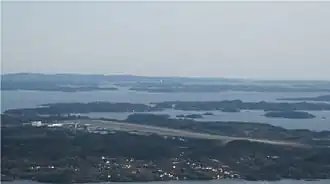 Planning of an airport with an airstrip took place during the 1930s. A series of public institutions made various reports between 1931 and 1938, which largely recommended Flesland as a location, which was at the time located in the then independent municipality of Fana. The main alternative was Herdla, an island northernmost in Askøy, which was first recommended in 1933. The main disadvantage with Flesland was the topography and that it would not be possible to build longer runways than 800 and 850 meters (2,620 and 2,790 ft), respectively. A municipal committee recommended therefore in 1938 that Herdla be chosen, to be jointly financed by the state and the municipality[3]: 40