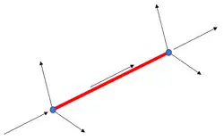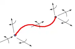 Floating bodies typically undergo significant rigid body motions when subjected to ocean waves, so the numerical solver must also cater for arbitrarily large and non-linear displacements and rotations in three dimensions. This is a key aspect of the structural model which is necessary to ensure accurate modelling of the restoring forces such as effective tension and bending moment. The solver uses a convected coordinate technique to cater for large three-dimensional displacements and rotations.[2] Each element of the finite element discretisation has a local axis system associated with it, which moves with the element as it moves in space and time. The internal and external virtual work statements are written in the convected system, and deformations along the element relative to this system are assumed to be moderate.
