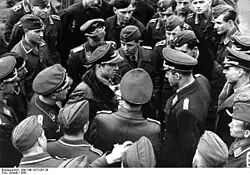 Harlinghausen was given meager forces to achieve these ends. KG 40, based at Cognac and Bordeaux was handed over to him, containing all three groups of the unit (I., II., and III./KG 40). Küstenfliegergruppe 106, 406, 506, 606 and 906 were also made available, based at Amsterdam, (Netherlands), Brest, Westerland, Lannion, (France), Aalborg (Denmark). Aufklärungsgruppe 122, a reconnaissance unit, was based in several locations; at Amsterdam, Brest and Wilhelmshaven. Stab./KG 40 was known to have just one Fw 200 on strength on 31 March 1941.[40] Owing to Hitler's order on 6 January 1941, I./KG 40 was initially under the command of Dönitz, who at that time was based at Lorient. It had only eight Fw 200s on strength at the end of 1940, and subsequent strength is unknown.[40] II./KG 40 was formed with 1 Staffel on 1 January. The 5th and 6th Staffel worked up on Heinkel He 111 and Dornier Do 217 E-1s into late June 1941. On 26 July it was declared operational, and transferred to Cognac with 29 Do 217s (12 operational) and one He 111.[41] III./KG 40 was known to have been formed on or about 24 March 1941, and was based at Brest. Strength details are unknown in 1941, but the unit did operate He 111s and the Fw 200.[42]