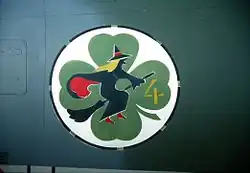 The Fliegerstaffel 4 (Squadron 4) of the Swiss Air Force, and belonged to the Überwachungsgeschwader with professional military pilots. Their home base at the dissolution was the Payerne Air Base and the Fliegerstaffel 4 was equipped with Mirage IIIRS . The Fliegerstaffel 4 carried as the coat of arms the AMIR badge (AMIR = Aufklärer Mirage (reconnaissance Mirage)). This badge shows on a white ground a falcon head drawn with black lines, the neck of which is filled with blue color. The beak rises above the round badge, above the head of the falcon is the red number 4. Except for the number 4, the badge is identical to the AMIR badge of the Fliegerstaffel 10 and the Fliegerstaffel 3 (they had a number 10 resp. 3 In the badge).