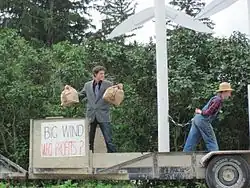 The climax of the movie Animal House (1978) features the protagonists from the title fraternity surreptitiously launching their own float into a parade featuring legitimate entries from many of their rivals. The float, a giant decorated cake adorned with the words "Eat Me," later splits open to reveal the parade-destroying "Deathmobile" inside.