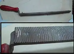 A woodworking float (more rarely used in silversmithing),[1] also called a planemaker's float, is a tapered, flat, single cut file[2] of two types: edge float and the flat sided float[3] which are traditional woodworking tools generally used when making a wooden plane. The float is used to cut, flatten, and smooth (or float) key areas of wood by abrasion. Its woodworking uses go well beyond planemaking.