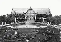 The garden dates to 1863 when a private company was organized to create Flora park (5.5 hectares) as a replacement for the city's older botanical garden near the Cologne Cathedral, which in 1857 was destroyed for construction of the central railway station. This new park was designed by Peter Joseph Lenné in 1864 in a mixed German style, incorporating French Baroque, Italian Renaissance, and English landscape garden elements. In its center is a glass palace (orangery) structure of cast iron and glass patterned upon the Crystal Palace (London) and Jardin d'hiver (Paris), which served as an exhibition site through the late 19th century, including horticultural exhibitions in 1875 and 1888, and an industrial exhibition in 1889. Frauen-Rosenhof, an Art Nouveau garden, was added in 1906.