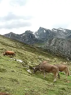 The most appropriate way to describe the vegetation landscape is to refer to its bioclimatic floors, which are distributed in a staggered manner with respect to the altitude. Four bioclimatic floors or horizons can be differentiated in Cantabria:[2] the hilly, the montane, the subalpine and the alpine, the latter restricted to the summits of the Picos de Europa.