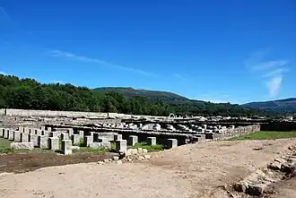 Cuevillas's archeological work, which grew with the assistance of the people associated with the Museo da Comisión de Monumentos, is reflected in the study A mansión de Aquis Querquernis (1921) contained a vast amount of work on pre-Roman Galicia.[4] In fact, it was him and his group of collaborators that began a brief excavation in the early 1920s on the site of the Roman encampment of Aquis Querquennis, discovering the wall of the encampment, although they didn't this short wall as the principle wall of the complex, and other walls of small size related to habitable structures.