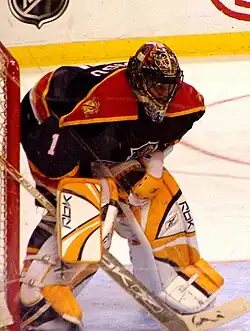 The Panthers' first major stars were former New York Rangers goaltender John Vanbiesbrouck, rookie Rob Niedermayer and forward Scott Mellanby, who scored 30 goals in Florida's inaugural season.[18] Their first game was a 4–4 tie on the road against the Chicago Blackhawks, while their first win was a 2–0 shutout of the Tampa Bay Lightning in the Thunderdome before a then-NHL record crowd of 27,227. The Panthers had one of the most successful first seasons of any expansion team in league history, finishing just two points below .500 and narrowly missing out on the final 1994 playoff spot in the Eastern Conference.[19] Their first-year success was attributed mainly to the trap defense that first-year coach Roger Neilson implemented. This conservative style was widely criticized by NHL teams; some even suggested that the Panthers were ruining the game.[20] While the team executives expected the audience to consist of mostly "snowbird" Canadians living in Florida, the Floridians soon embraced the Panthers.[18] Helped by Miami's other teams having middling performances, the club averaged 94% capacity at the 14,500-seat Miami Arena, and sold 8,500 season tickets in 100 days.[18]
