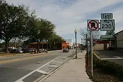 Florida State Truck Route 230 in Starke, Florida was designated in order to divert trucks from the historic Call Street Historic District. The truck route originally ran for one block on South Water Street between SR 230 and SR 100 along the eastern edge of the Starke Downtown Music Pavilion. Due to the FDOT project to add a bridge for SR 100 over the CSX Wildwood Subdivision, Truck Route 230 was relocated to the newly constructed South Saint Claire Street.[3]