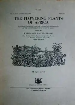 Flowering Plants of Africa is a series of illustrated botanical magazines akin to Curtis's Botanical Magazine, initiated as Flowering Plants of South Africa by I. B. Pole-Evans in 1920. It is now published by the South African National Biodiversity Institute in Pretoria. The magazine depicts and describes flowering plants from Africa and its neighbouring islands. The issues are printed in soft cover measuring 250 x 190 mm.
