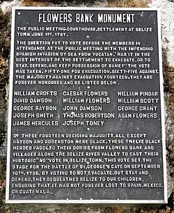 Flowers Bank is a village in Belize in Belize District. It is a famous place in Belizean history due to its defence of the then British Honduras by not fleeing in the face of Spanish invasion from Yucatán.