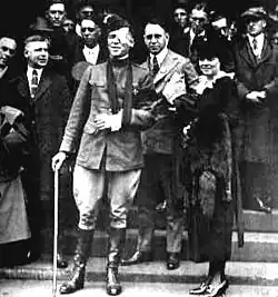 ![]() Gibbons is given a "home town" welcome at Minneapolis, Minnesota on October 5, 1918. To the right of the photo is his sister Zelda. | |