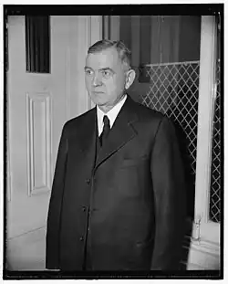Roberts had the support of Congressman John W. Flannagan Jr.,[4] but both Virginia senators, Harry F. Byrd and Carter Glass, disapproved of Roberts' selection. They preferred another state court judge, A.C. Buchanan, or Assistant United States Attorney Frank S. Tavenner Jr., among others seeking the position.[5] Months prior, Roosevelt had debated about who should have "veto power" over federal appointments in Virginia, suggesting that newly elected Governor James H. Price should have that power rather than the United States senators. Charles J. Harkrader, a member of the Senate of Virginia and publisher of the Bristol Herald Courier made this White House discussion public in March 1938.[2][4][6] When Senator Glass objected that he had not been consulted over Roberts' selection, Roosevelt responded "that he was happy to consult Glass, but reserved the right to consult others, including, if he wished, 'Nancy Astor, the Duchess of Windsor, the WPA, a Virginia moonshiner, Governor Price or Charlie McCarthy.'"[7]