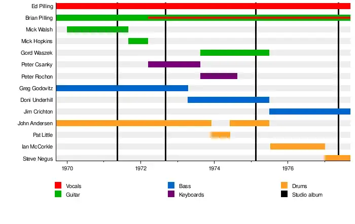 | Past members | Brian Pilling (deceased) Mick Walsh Tom Park Greg Godovitz Jorn (John) Andersen Mick Hopkins Peter Csanky Gord Waszek Peter Rochon Doni Underhill Pat Little Ian McCorkle Steve Negus |
