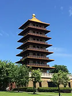 The pagoda is named after the Six Perfections, namely giving, ethics, patience, diligence, meditation, and wisdom. The pagoda is fitted with a long-term exhibition displaying information on Venerable Master Hsing Yun Public Education Trust Fund and the works of Venerable Master's One-Stroke Calligraphy. Through a 3D video presentation, viewers get to watch how Venerable Master penned his calligraphy works in one stroke using his inner eye.