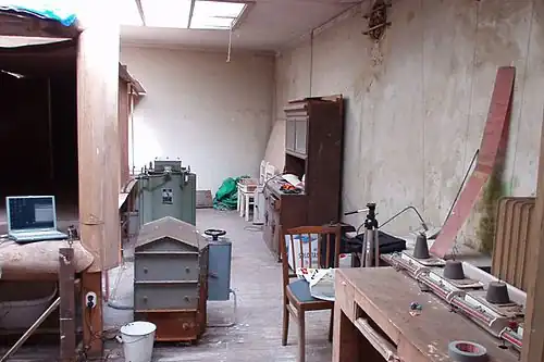 The wind tunnel is a closed recirculating wind tunnel for subsonic speed range, produces wind speeds up to 16 m per second and is still fully functional. The simplicity of the instrumentation is demonstrated by the use of kitchen scales to measure the forces acting in the wind tunnel, stove pipes and curtains controlling the airflow and reducing swirl. Everything in this lab was still in place, as the 85-year-old Henrich Focke had left it, but the building was not in good condition.