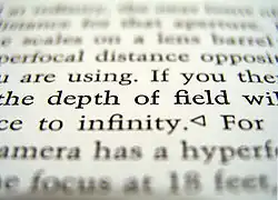 Text on a page that is partially in focus, but mostly not in varying degrees