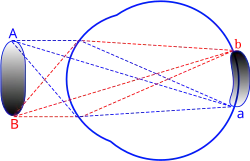 In geometrical optics, a focus, also called an image point, is a point where light rays originating from a point on an object converge.[1] Although the focus is conceptually a point, physically the focus has a spatial extent, called the blur circle. This non-ideal focusing may be caused by aberrations of the imaging optics. Even in the absence of aberrations, the smallest possible blur circle is the Airy disc caused by diffraction from the optical system's aperture; diffraction is the ultimate limit to the light focusing ability of any optical system. Aberrations tend to worsen as the aperture diameter increases, while the Airy circle is smallest for large apertures.