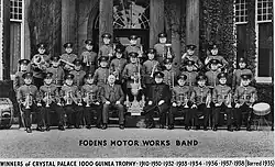Foden's Band (originally Foden's Motor Works Band, and variants with sponsors' names) is a brass band from Sandbach in Cheshire. The band derives its name from the Foden manufacturer of trucks in Sandbach. Foden's Band are one of the top brass bands in the world; regularly appearing at the top of the "World of Brass – World Rankings"[2][3] In 2012, Foden's became double winners of both the National Championships and the British Open.[4]