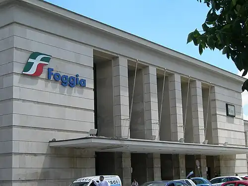 Foggia railway station (Italian: Stazione di Foggia) (IATA: FOI) serves the city and comune of Foggia, in the region of Apulia, Southern Italy. Opened in 1864, it forms part of the Adriatic Railway (Ancona–Lecce), and is the terminus of the Naples–Foggia railway. It is also a junction for several other, secondary lines, namely the Foggia–Manfredonia, Lucera–Foggia and Foggia–Potenza railways.