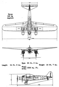 - Powerplant: 3 × Wright R-1820-F Cyclone 9-cylinder radial piston engine , 477 kW (644 hp) each